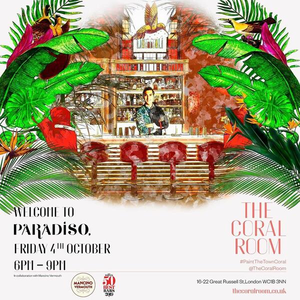“I am delighted to be welcoming both of these amazing bars to The Bloomsbury. Both are so well-known, and it will be an absolute pleasure to play them at The Coral Room and The Bloomsbury Club. This is set to be an amazing night and I can’t want to spend an evening behind the bar with the teams from Paradiso and The Old Man.”