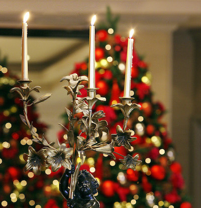 “We put wreaths up in the Gallery, too. The wreaths and the trees have to tie in together, because it’s a big space. They really dress the windows well, and we put them up on the outside as well. In the hotel, there are eight wreaths, and then we put in twelve trees. Some of them are in the bedrooms and in the business areas as well.