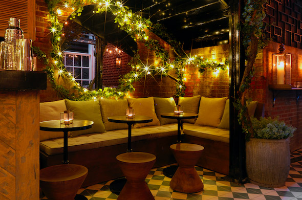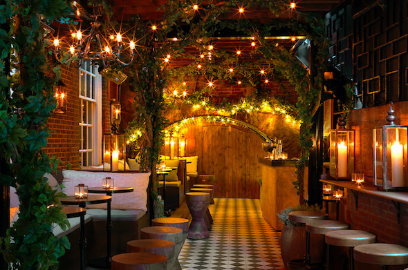 Plush leather armchairs, atmospheric lighting and wall to wall bookshelves create a luxuriously decadent setting for guests to enjoy their chosen tipple as well as a fabulous menu serving up delicious and uncomplicated food. Venture through the bar and you’ll arrive in the enchanting outdoor grotto. With twinkling lights and cosy booths, it’s perfect for spending long summer evenings in.