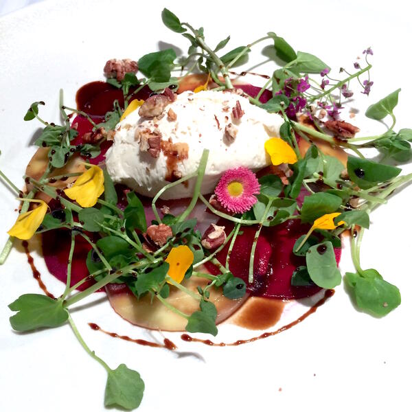 Goats cheese mousse, beetroot and walnut salad £7 v g