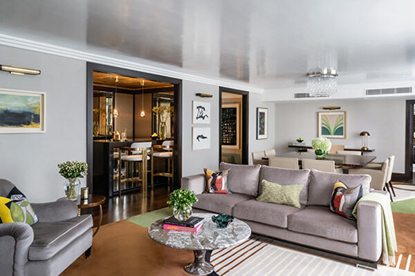 It’s no accident then, that the bright and graphic cushions scattered around the suite are based on works by the Spanish artist, Pablo Picasso. The cushions come from tapestry workshops of Jules Pansu and are woven in Les Tissages de la Lys, France, with the agreement of the Picasso Administration.