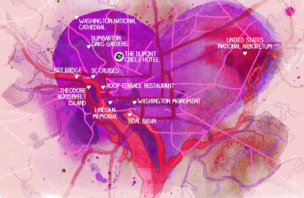 Fear not! Washington is home to some amazing monuments, parks and gardens; perfect settings for whispering sweet nothings to that special someone, and more importantly – free of charge (or pretty cheap) to roam around! So wrap up warm, make a date with your sweetpea, and see how many of our romantic map’s locations you can visit together...