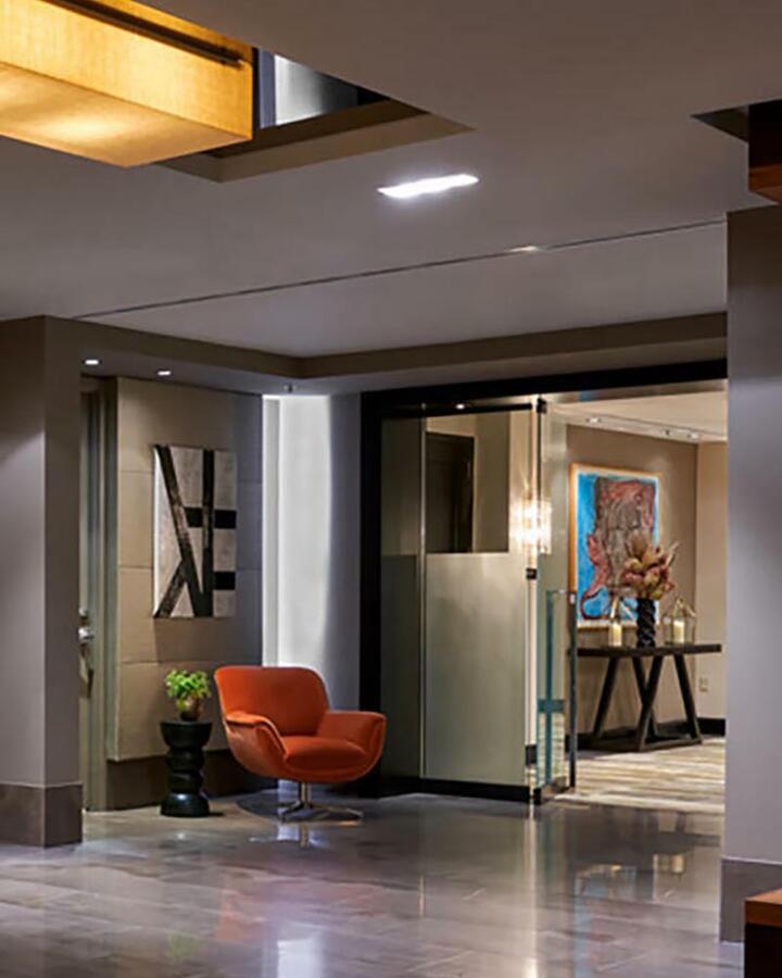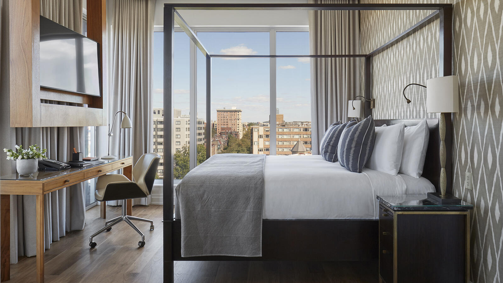 El interior del hotel, con un diseño moderno y una decoración que incluye obras de arte originales y mobiliario clásico, crea un escenario de estilizado lujo. Las espaciosas habitaciones personifican la elegancia contemporánea, mientras que Level Nine, la planta ejecutiva del hotel, presenta 15 magníficas suites con ventanas que van del suelo al techo, algunas de ellas con balcón privado, y todas con impresionantes vistas panorámicas de la ciudad.