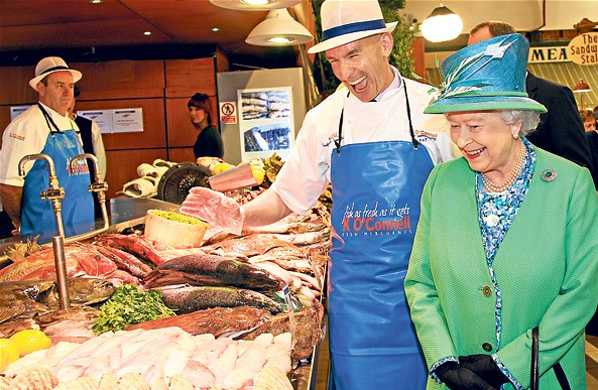 Pat O’Connell and the Queen at Cork’s English Market image via Telegraph.co.uk