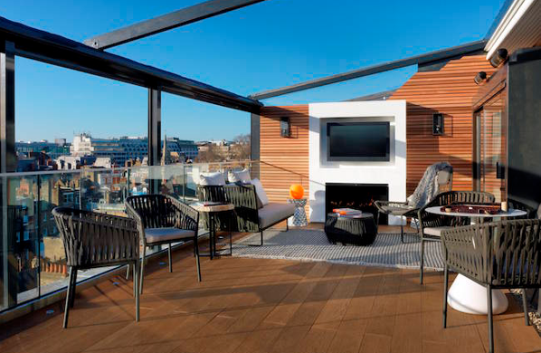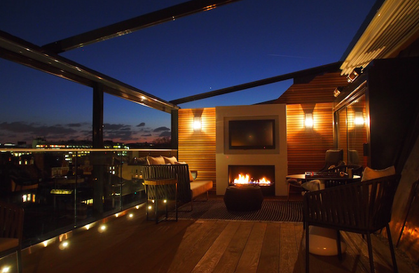 It’s fair to say that the weather in London can be a little temperamental. Which is why this terrace holds the key to suite perfection. If the weather isn’t great, you can sit under the retractable roof and keep a close eye on the comings and goings of the city. The rain won’t bother you a bit, particularly if you switch on the fire. You can sit back by the cosy fireplace, a soft blanket strewn across your shoulders, while you drink in the city. There’s even a television above the fireplace, so you can take in a movie while relaxing on the terrace (which can be heated, too).