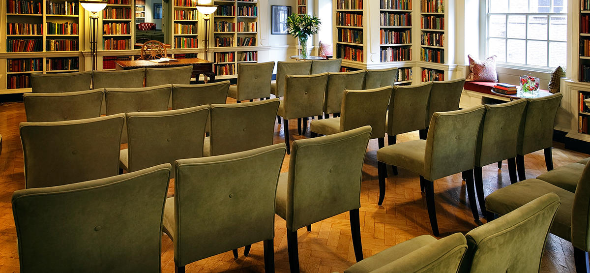 Situated adjacent to The Chapel, The Seamus Heaney Library is ideal for lectures, board meetings, cocktail parties, afternoon teas, literary lunches and private dining in Bloomsbury. The air-conditioned wood-panelled room has ample natural daylight and is furnished with Lutyens-designed “spiderback” chairs, parquet floors and a long oak table.