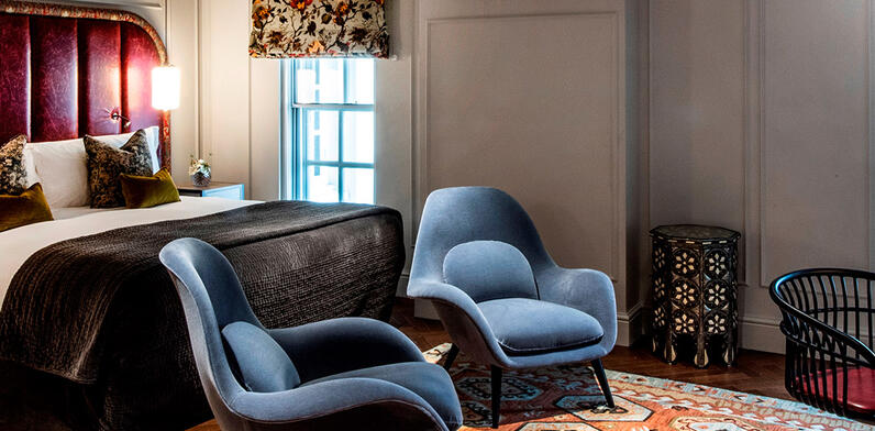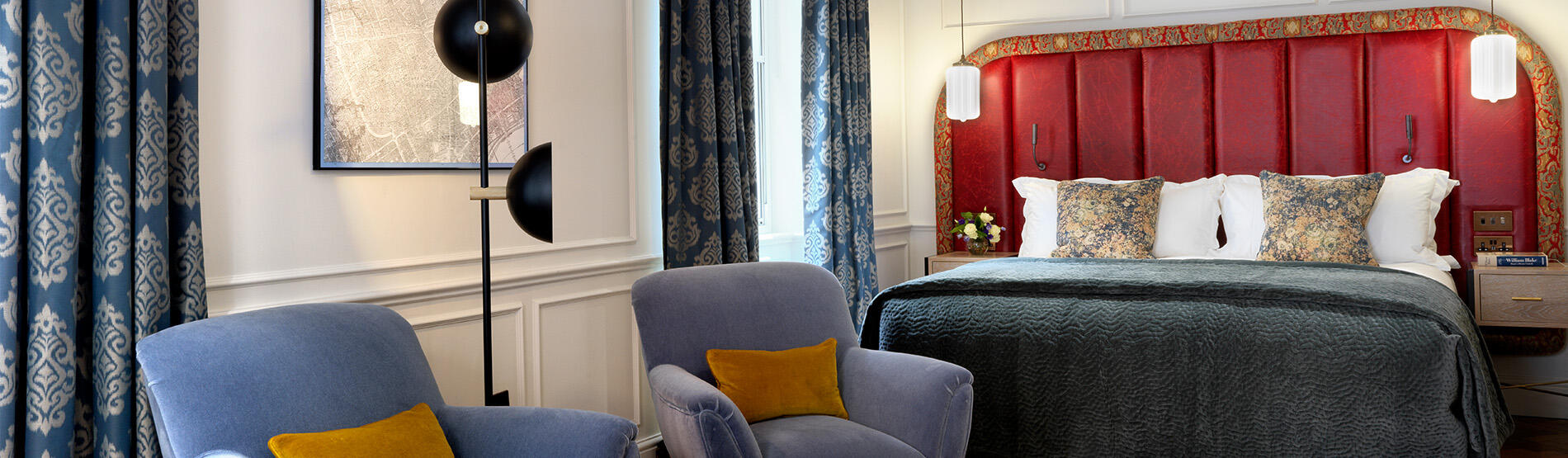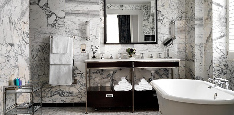 Discover our beautiful suites in the heart of London. Set on the corners of the building to maximise space, light and views, The Bloomsbury’s spacious Luxury Studio Suites feature a rich, regal palette. Interiors include designer rugs, solid wooden furniture and velvet-upholstered armchairs. The result is a light-filled space with an opulent feel, not least in the Italian marble bathrooms, complete with freestanding roll-top baths, separate showers and double marble-topped vanity units.