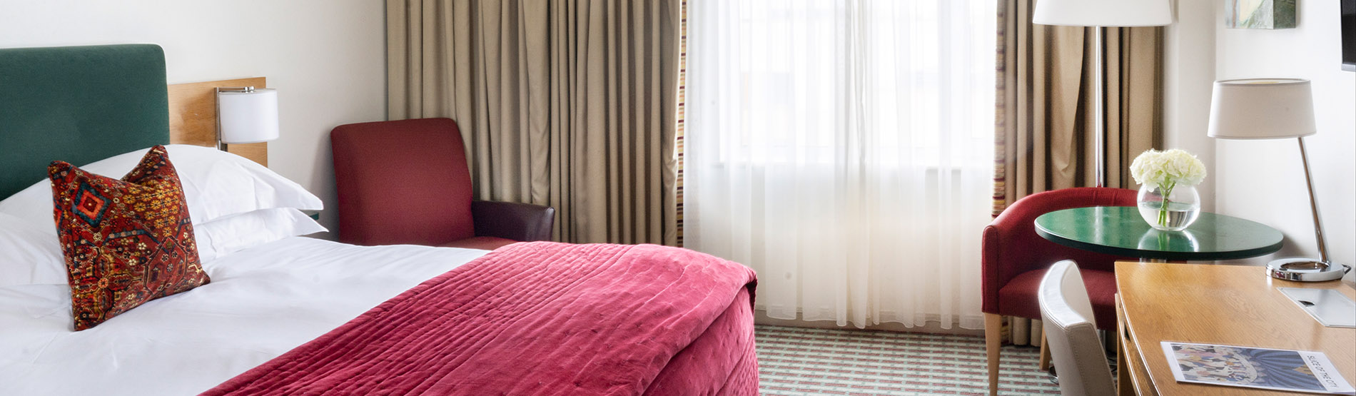 Experience refined comfort in the heart of Dublin with our Deluxe King hotel room. Perfectly appointed for both relaxation and productivity, each room features a supremely comfortable king-size bed dressed in crisp linen and duck down duvets, alongside a 55" Smart TV, in-room ironing facilities, a Nespresso machine, a personal safe, and a dedicated work area. The marble-clad bathroom is stocked with White Company toiletries and completed with a plush bathrobe and slippers.