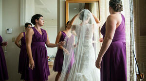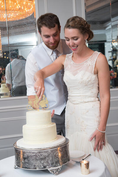 Fun fact: Alli wore her grandmother’s wedding dress from 1957 for the ceremony, which was lovingly restored and restyled by her mother. "The timing could not have been more perfect, as we were married within two weeks of both our 6-year dating anniversary and Alli’s grandparents’ 60th wedding anniversary. We honored their love and commitment with a surprise cake on the dance floor after an anniversary dance."