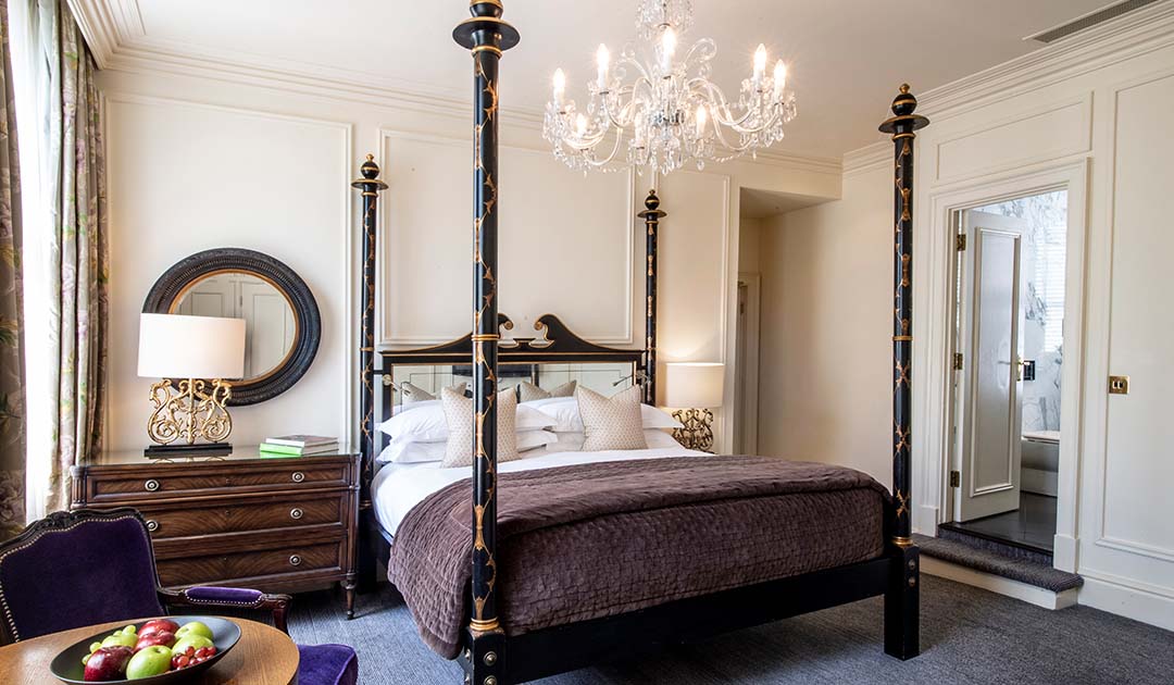 Perfect for families or groups, this versatile suite offers four poster beds, unique furniture and carefully curated art pieces which have been hand-selected to compliment the palettes. For added flexibility, this London hotel suite offers the option to connect with a second room.