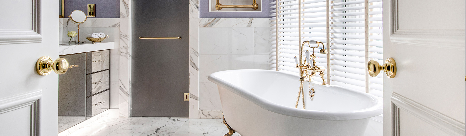 Soft curves – from the period headboard of the four-poster bed to the free-standing Victorian roll-top bath – imbue the space with a regal calm. Heightened by floor-to-ceiling windows, a stunning Waterford crystal chandelier and in walk-in dressing space, this truly is an oasis of calm in the heart of South Kensington, London.