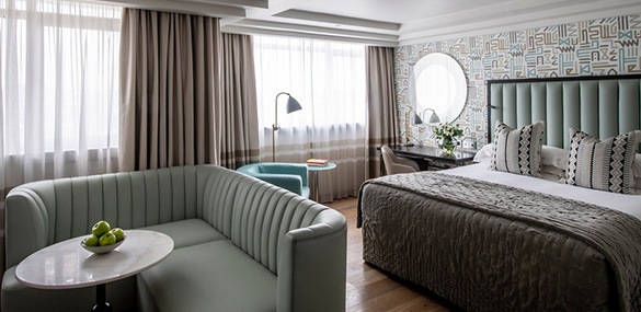 Switch off in the generous 344ft2 (32m2) space of the Studio Suites at The Marylebone hotel. Featuring an elegant open-plan layout with an additional seating area, these luxury suites in central London offer a refined retreat in the heart of the city.