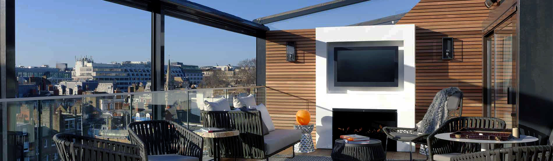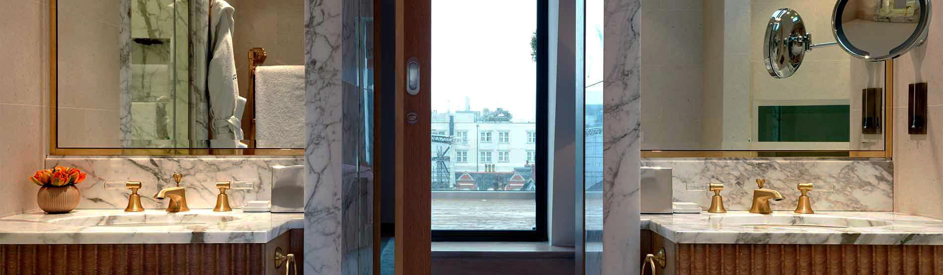 Few – if any – luxury hotel suites in London can compare with The Marylebone’s top Signature Suites – the Terrace Suites - for style, 5-star luxury or space. Named as one of the best hotel suites in central London, these havens of contemporary style boast a large outdoor space looking out over the London skyline complete with sofas, Eames-inspired chairs, dining table, an in-built gas fireplace and TV, all decorated in a chic Scandi style with retractable roof and blinds. Inside, the rich hardwood floors and arabascato marble bathrooms feature Starck, B&B Italia and Porta Romana furnishings and lighting, while contemporary artwork lends a bold, sleek feel, setting the seal on the supremely well-appointed space.