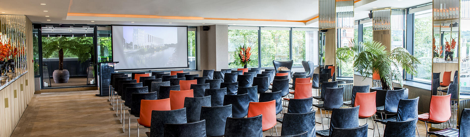 The 140 sqm Look Out event venue at The River Lee is perfect for large-scale events in Cork city centre and can be set up in a wide range of different styles. Overlooking The Weir and finished in a tasteful palette of subtle colours, marble and wood, the venue space offers also the very latest audio-visual technology including plasma TV/LCD projector and screens. A dedicated Events Executive is on hand throughout the day to assist you and ensure that your event runs smoothly.