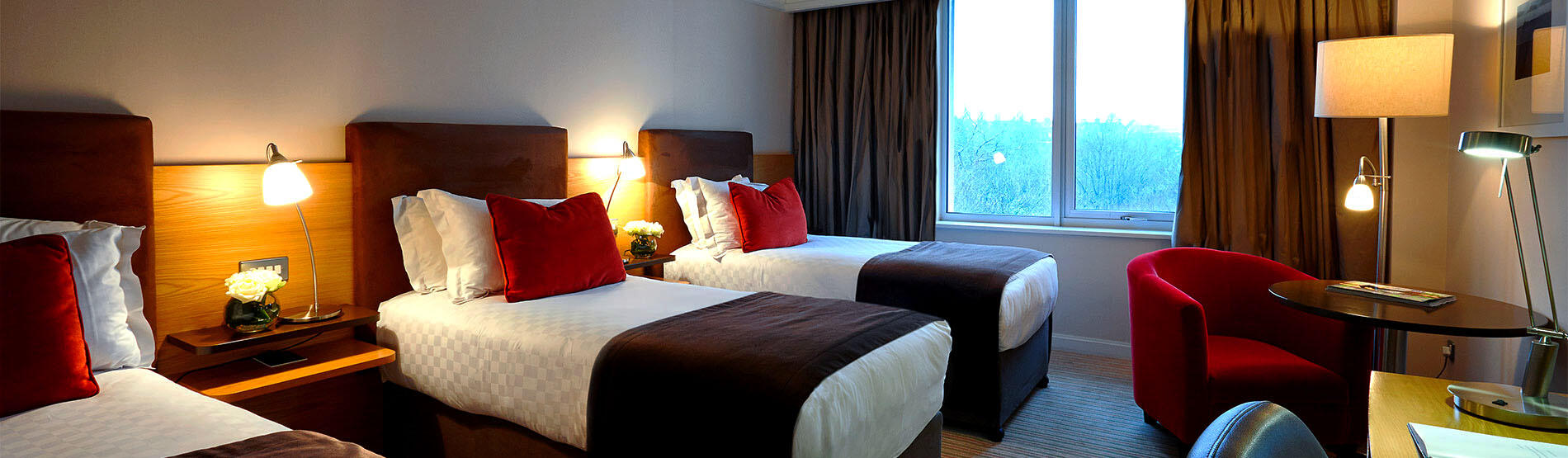 Air-conditioned and luxuriously furnished, each Classic Room at The River Lee hotel features three exceptionally comfortable single beds with crisp white linens and indulgent duck down duvets.