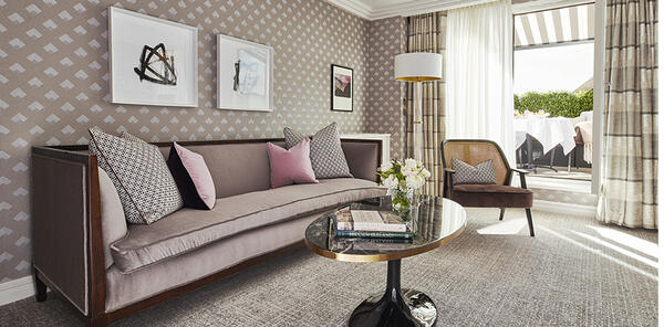 Featuring an elegantly appointed sitting room upon arrival into this unique suite with dynamic wallpaper and statement artwork, the eye is immediately drawn to the spacious and fully furnished private terrace, offering panoramic and intimate views over city rooftops and landmarks.