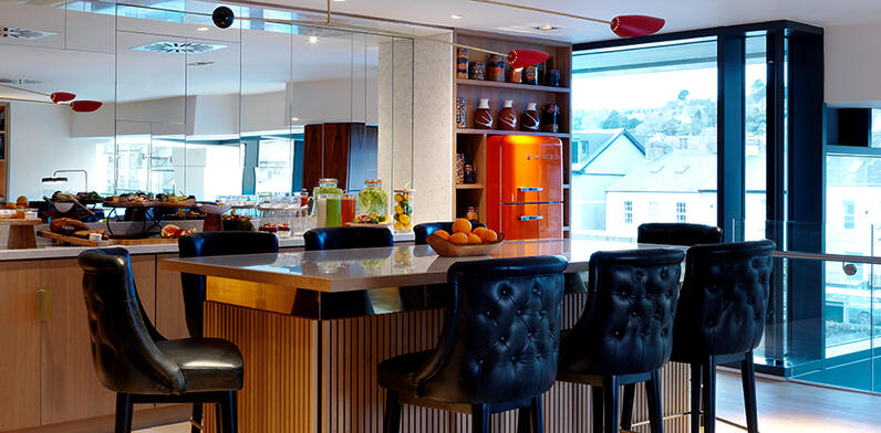 Our dedicated business floor offers eight flexible working environments with space for anything from 5 to 110 people. Each of these quiet and secluded rooms is infused with natural light and offers views across the historic part of the city, taking in sights like St Fin Barre’s Cathedral and University College.